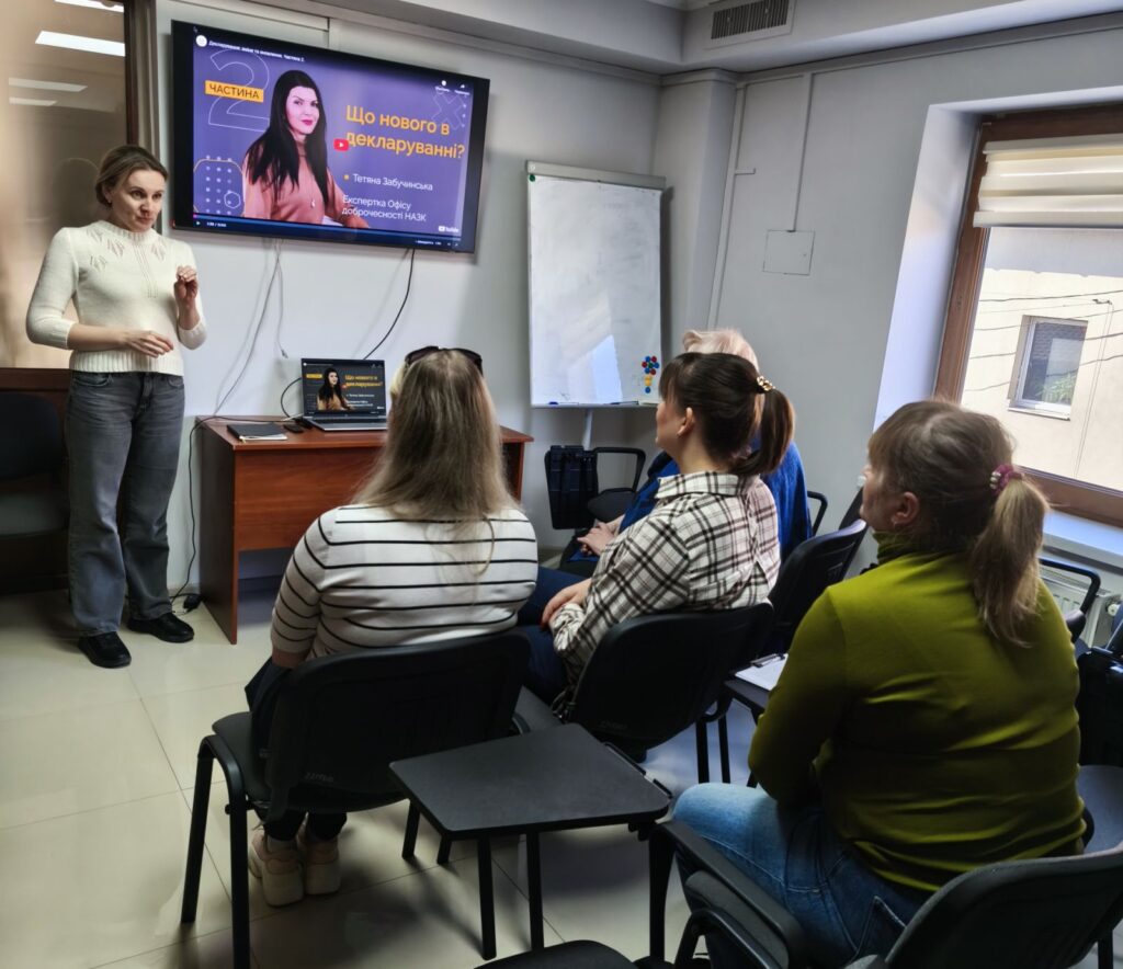 Зокрема, для посадових осіб, які подають декларацію, було проведене навчання на тему «Особливості заповнення декларації осіб, уповноважених на виконання функції держави або місцевого самоврядування», під час якого було зроблено акцент на нових функціях, які почали діяти в Реєстрі декларацій у 2026 році.